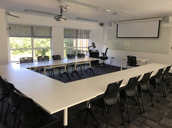 Enter the Chipperfield building through the entrance on the car park side with Sibson building to the left. Take the stairs on your left, turn left at the top of the stairs and CHSR2 is through the double doors straight ahead of you.